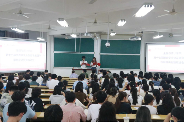 紧接着,匡启泽对团学各部门(团委直属部门秘书处、组织部、宣传部、实践部,学生会活动部、学习部、权益部、调研部,团委直接指导的金大团融媒体中心、青年志愿者协会)进行详细介绍,围绕组织定位、核心职责、特色工作、成长价值等方面展开。