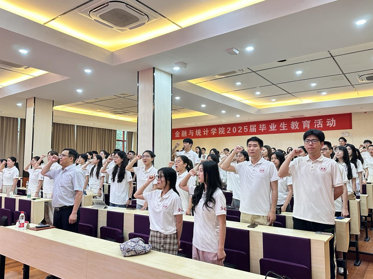 党课最后,全体毕业生党员重温入党誓词,强化党员身份认同和使命担当。